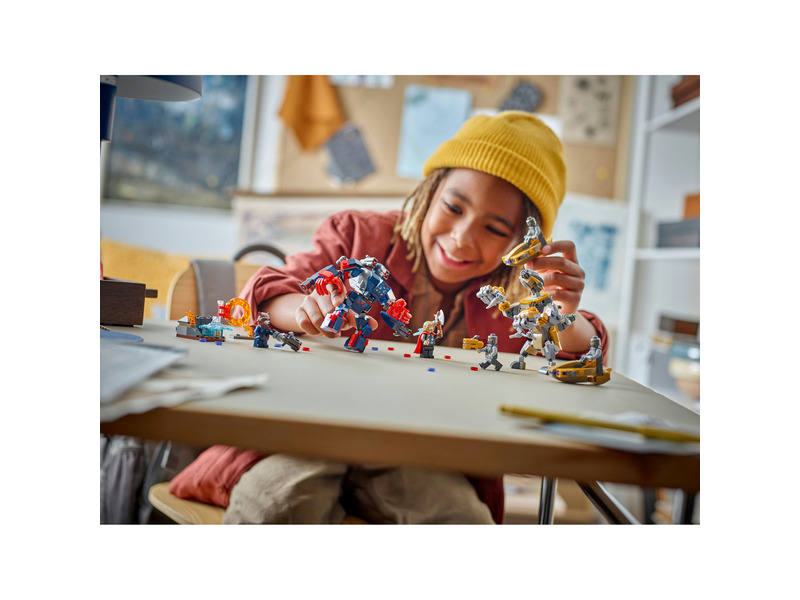 A Bosszúállók: Végjáték Thor a chitauri harcosok ellen (76322) egy kiváló minőségű, megépíthető, 8 éves kortól ajánlott szuperhősjáték. Ez a sokoldalú ajándék tökéletes a Marvel-rajongók és mindazok számára, akik szeretik a megépíthető játék robotokat, az akcióhősöket és a Bosszúállók: Végjáték Marvel-filmet.
