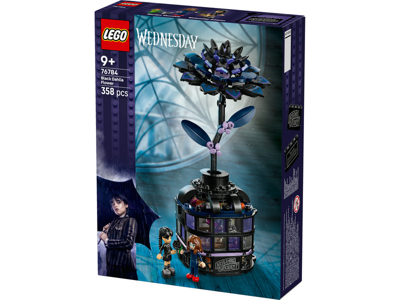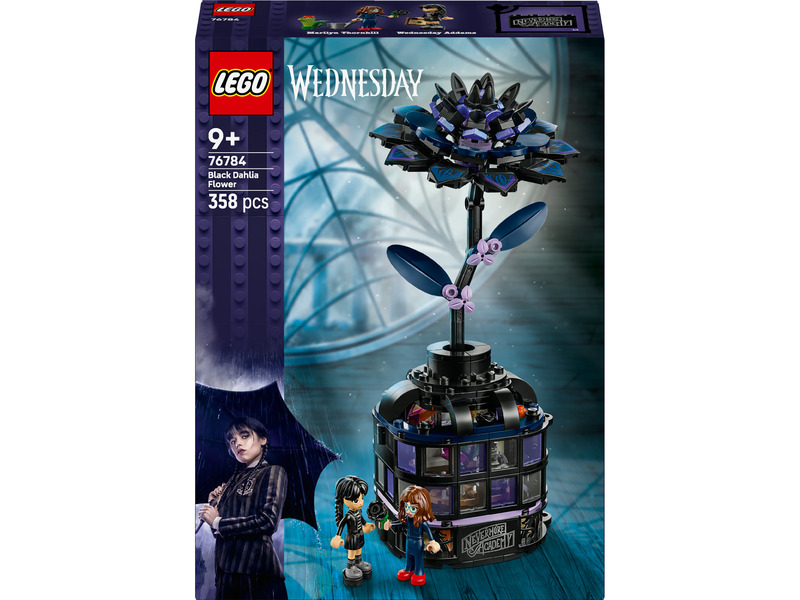 Egy elegáns kiállítási darab vár a növények és a formatervezés 9 éves vagy nagyobb, lelkes rajongóira a Fekete dália (76784) LEGO® Wednesday építőjátékkal. Ez a szobadekoráció tartalmaz egy növényt, egy fekete dáliát (levelekkel és világoslila rügyekkel) és egy mini üvegházra hasonlító vázát. Az építés végén a gyerekek eltávolíthatják a dáliát, hogy kinyissák a vázát, és felfedezzék a belsejében lévő osztálytermet, ahol kivehető asztalok, egy kisszék és további történetmesélést támogató kiegészítők találhatók. A gyerekek Wednesday és Marilyn Thornhill professzor bőrébe bújva játszhatják el a történeteket.