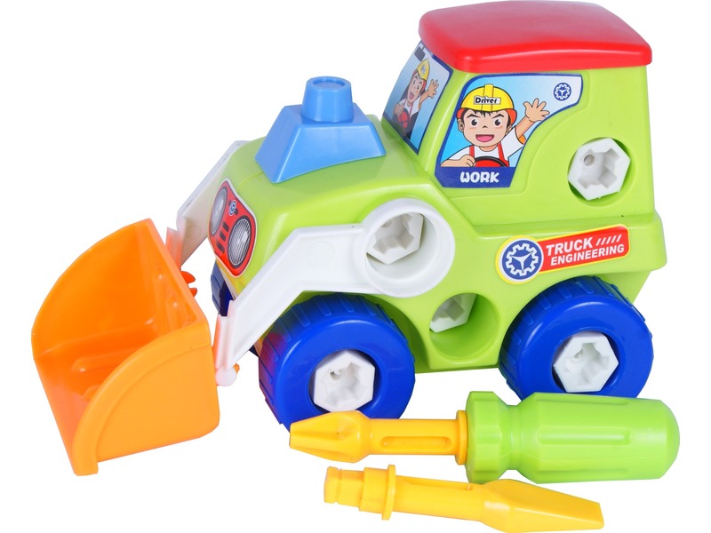 Rakd össze saját markológéped csavarhúzóval és villáskulccsal! A Szerelhető markológép csavarozó készlet egy menő markolós traktort rejt magában, szerszámokkal. Az markolót elemeire szét tudod szedni, majd újra össze tudod rakni. Miközben tekered a csavarokat és az anyákat, megtanulhatod, hogyan kell a csavarhúzót és csavarkulcsot is használni. Traktor mérete: 16 cm.