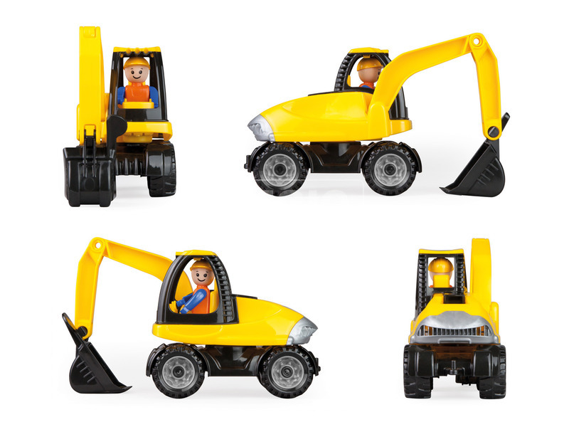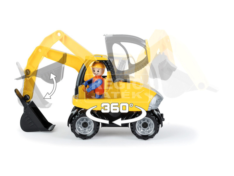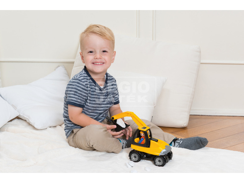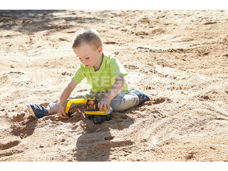 Műanyag markoló, 25 cm, sofőrrel Ezzel a markolóval a homokozóban bizony sok mindent lehet csinálni! Áshattok árkot a várnak, építhettek hatalmas várat , vagy csak gödröket, amibe vizet töltve kezdődhet a sarazás. Kiváló minőségű, többfunkciós játék markológép, amely minden gyermek kedvenc játéka lehet. A játék tartozéka egy kis emberke is. Ezzel a markolóval gyerekjáték a munka a homokozóban! Játszva építhetünk homokvárat, áshatunk árkot, gödröt. A játék mérete. kb: 37 x 21 x 16 cm. 2 éves kortól ajánljuk! Jellemző: Játékfigurával Körbefordítható felsőrésszel Mozgatható markolókanállal Acél tengellyel Anyaga: műanyag.
