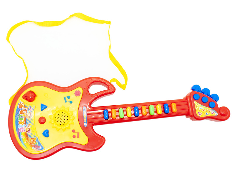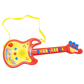 Gyakorold a slágereket elemes gitárral! A műanyag Elemes gitár egy világító és zenélő hangszer, vidám dallamokkal. A gitár gombjait megnyomva hallhatod a zenét, játék közben a hangszer fényeket is ad ki magából. Az Elemes gitár kék vagy piros színben kapható. Ha eleget gyakorolsz, igazi rocksztárrá válhatsz! A játék 3 db AA ceruzaelemmel működik, a csomagolás az elemeket nem tartalmazza. Gitár mérete: 46 cm. A játékok külön kaphatóak. A megjegyzésben kérjük tüntesd fel, hogy melyik változatot szeretnéd!