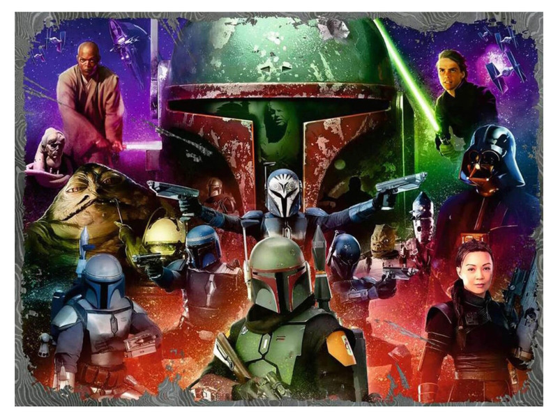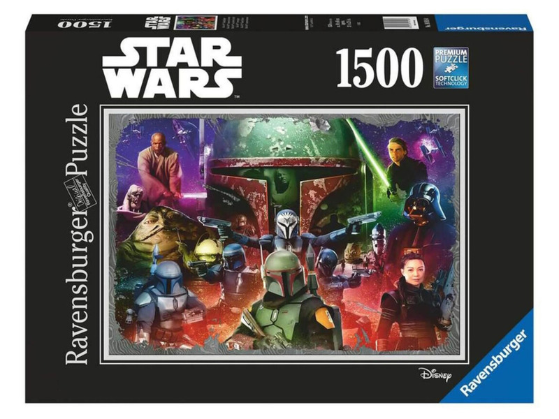 A Ravensburger 1500 db-os puzzle - Star Wars - Boba Fett, Bounty Hunter című képen Boba Fett látható, aki egy fontos mellékszereplő a George Lucas által kitalált Csillagok háborúja világában.