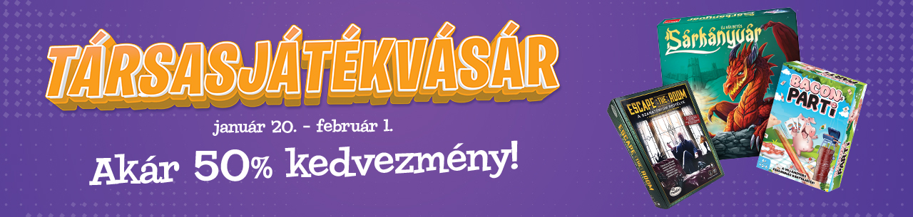 Az akció kizárólag a kampányban résztvevő termékekre érvényes 2026. január 20. és február 1. között, illetve a készletek erejéig az ország összes REGIO JÁTÉK áruházában és a www.regiojatek.hu webáruházban. Más akciókkal nem összevonható. A termékek elérhetősége áruházanként eltérhet. Felhívjuk a figyelmet, hogy bizonyos termékek kedvezményes ára csak online vásárlás esetén érvényes. A kép illusztráció.48 termék